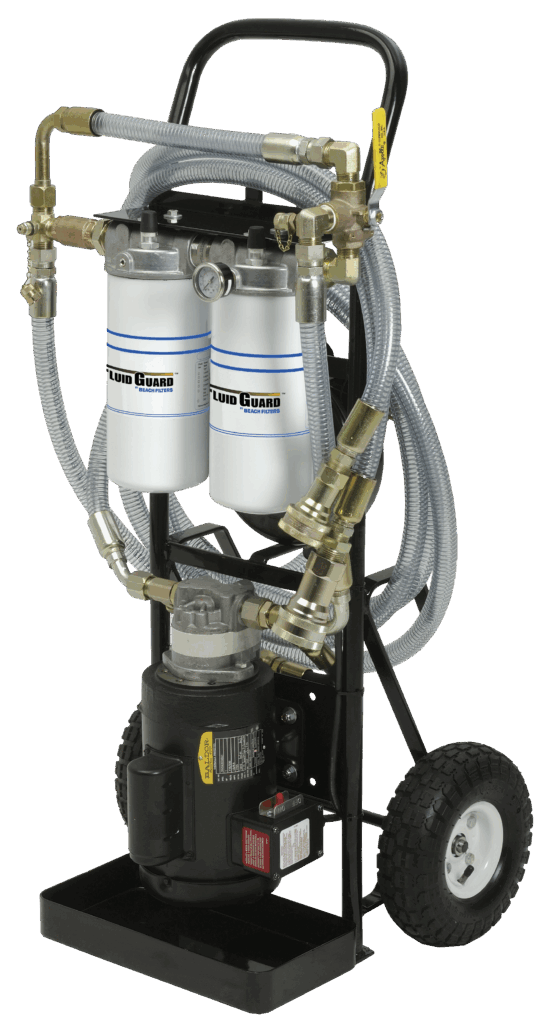 Fluid Guard portable offline filtration units are ideal tools to remediate contaminated systems, flush new equipment during commissioning, or periodically decontaminate systems that have inadequate on-board filtration to meet target cleanliness levels. With industrial-duty pneumatic tires, sturdy frames, and quality components, their filtration systems are ideal for easy maneuverability around plant floors.